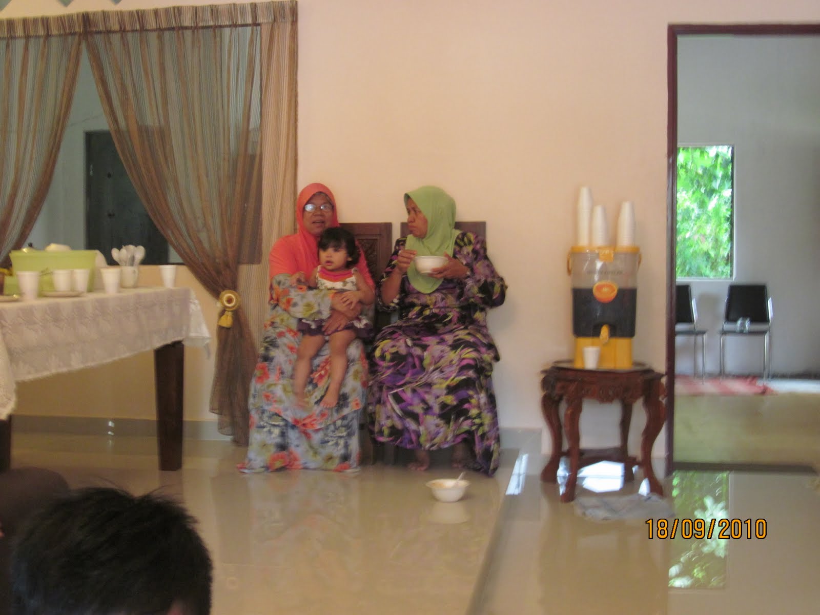 Alhamdulillah dengan amanah yang one berikan ramai juga kawan2 yang hadir bagi memeriahkan majlis di rumah wan rakan sekolah rendah kami. Me yang menaiki kereta anita berkonvoi dengan razimah yang membawa aspanita, ita dan yong yang membawa fazy. Tahun ni sampai sesat mencari rumah wan sb last year pergi ikut sign board yg diletakkan jd senang je jumpa....apa2 pun majlis mmg meriah lebih2 lagi dengan kehadiran kami yg mmg selalu kecoh...Terharu sangat normah yg sanggup datang bersama2 anak2 yang kecil dengan menaiki bas. Me and ita ambil normah di Sekolah Menengah Tasik Puteri and the same time Badrul pun call sb tak tau nak cari rumah wan, dia pun dekat port yang sama, jadi aku and nita menjemput 2 orang rakan kami ni....kelakar bab mencari badrul, kami dok cari kete dia, rupa2nya member datang naik superbike....